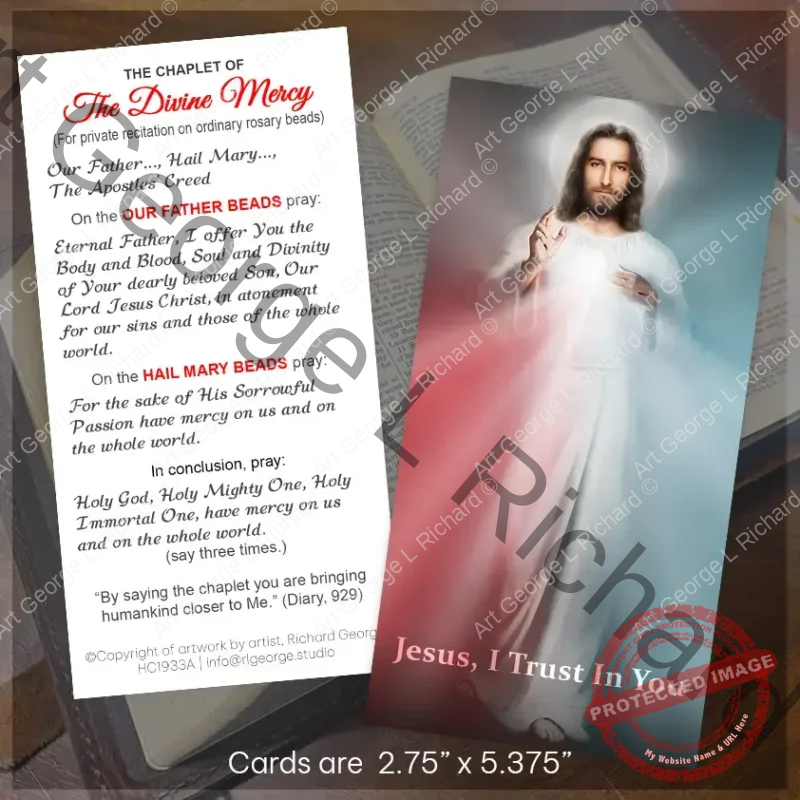 The Divine Mercy Prayer Card – Prayer Card featuring art by Richard L George.